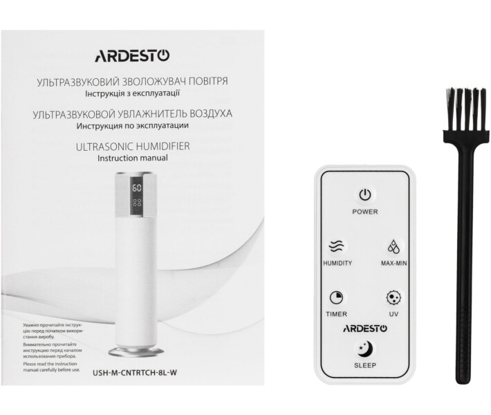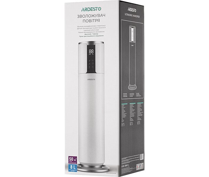 Конструкція ARDESTO USH-M-CNTRTCH-8L-W ергономічна. Заливання води у зволожувач верхнє, тому контролювати його рівень дуже легко. Якщо резервуар стане порожнім – передбачено автоматичне вимкнення. Для зручного керування у комплекті є пульт.